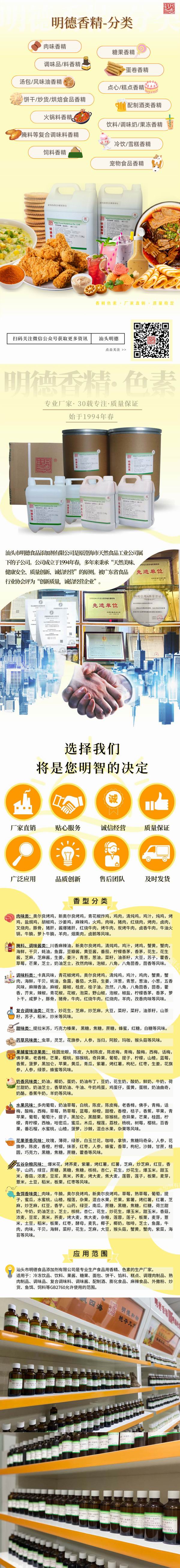 此外 明德食品添加劑 還研發(fā)了眾多香辛料風(fēng)味類香精,如小蔥、青蔥、炸蔥,如藤椒、花椒、麻椒等等,近10年來在調(diào)味料、醬料、火鍋底料多有應(yīng)用,好評(píng)如潮。諸如此類,各有特色。歡迎有興趣的廠家朋友們咨詢聯(lián)系!-