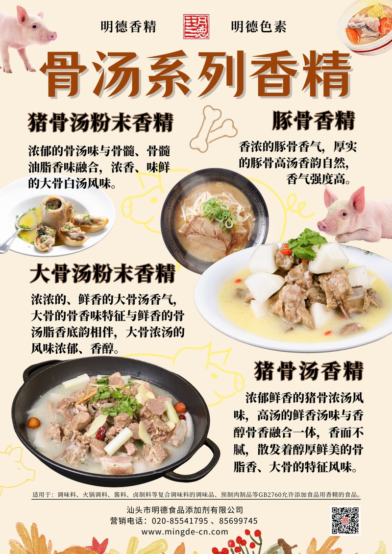打造濃郁湯底的關(guān)鍵風(fēng)味解決方案——明德骨湯系列香精,為工廠產(chǎn)品加“骨”提鮮隨著高湯類產(chǎn)品在調(diào)味品、預(yù)制菜、湯包等領(lǐng)域的快速發(fā)展,消費(fèi)者對(duì)“湯味還原度”和“骨香真實(shí)感”提出更高要求。