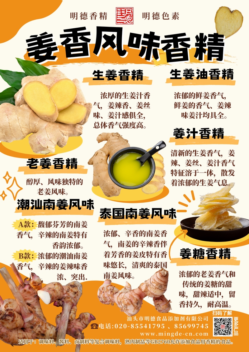 明德姜香風(fēng)味香精 姜之本味 層次盡顯汕頭市明德食品添加劑有限公司推出的姜香風(fēng)味香精系列,覆蓋生姜、姜汁、生姜油、老姜、潮汕南姜、泰國(guó)南姜等多種調(diào)性。產(chǎn)品風(fēng)味真實(shí),留香穩(wěn)定,適用于醬料、腌制料、調(diào)理食品、肉制品、風(fēng)味飲品、糖果、烘焙及外撒粉等B端應(yīng)用,幫助工廠穩(wěn)定呈現(xiàn)鮮明的姜辣香與去腥提鮮效果。